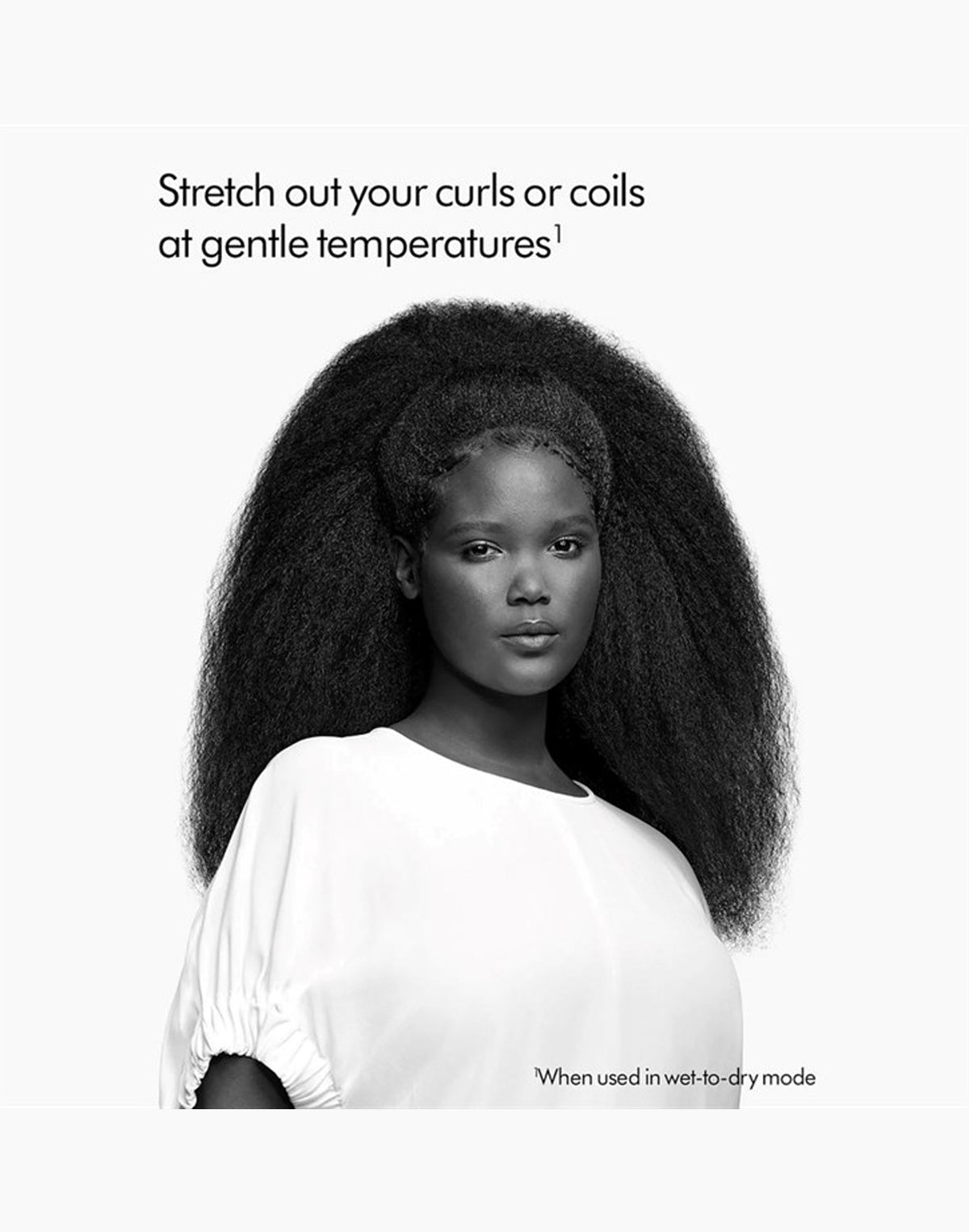 Our latest hair care technology uses high-pressure airflow to straighten hair as it dries. Air is precisely heated and projected evenly through the tress as you style - with no need for extreme heat.