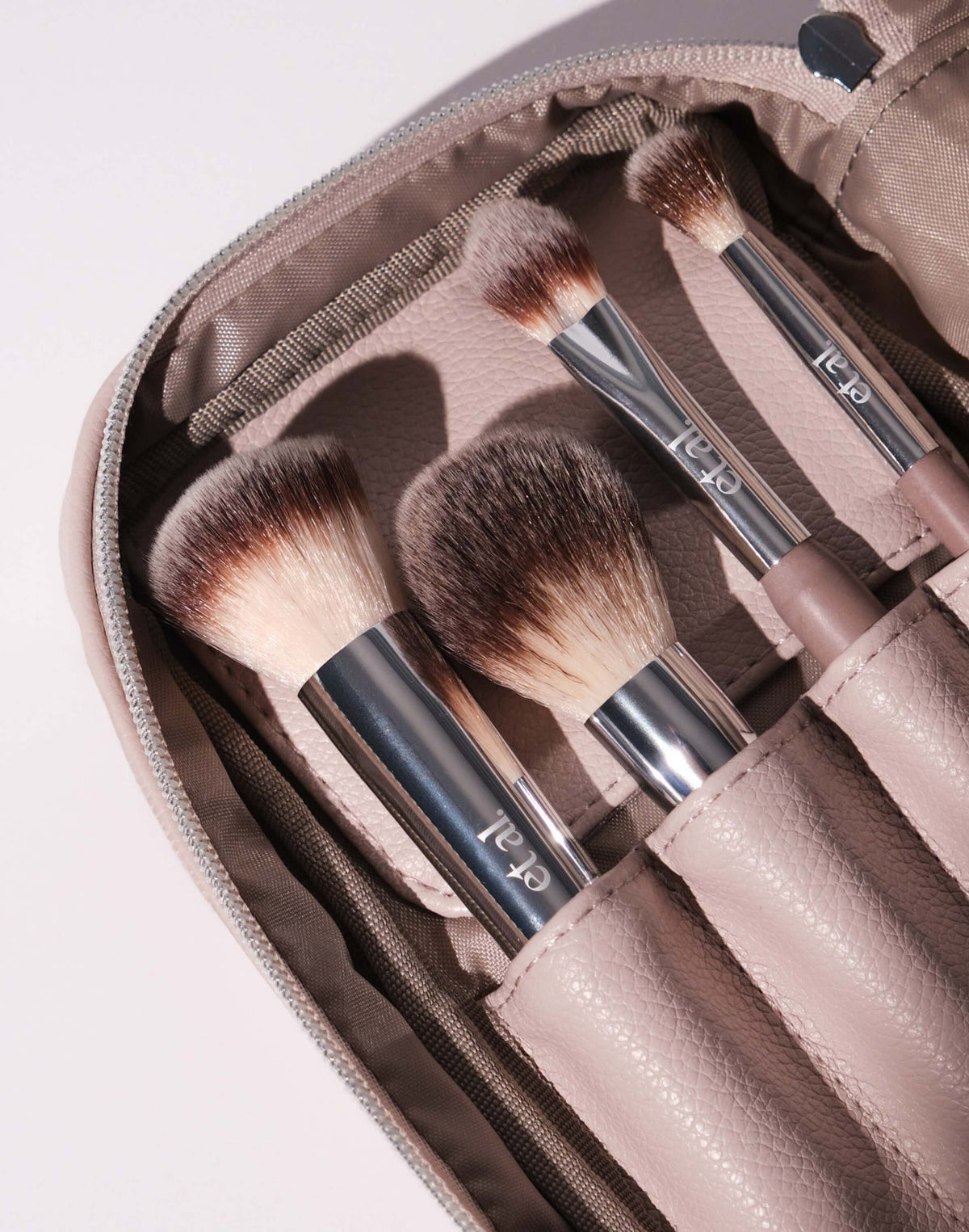 An exclusive set containing our Sculpting Brush, Diffusing Concealer Brush, Blending Brush + our bestselling Buffing Brush for a flawless finish combined with cleansing pad + 100% vegan solid brush cleanser.